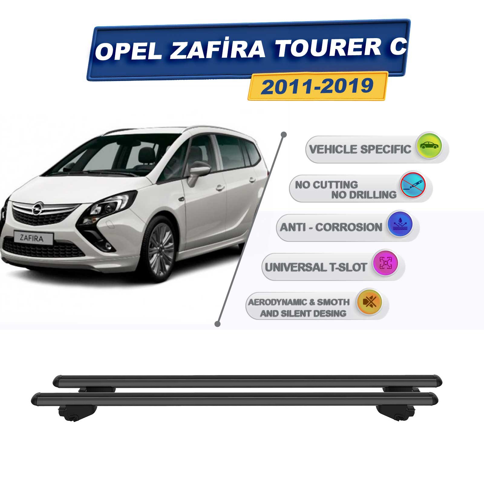 Opel Zafira C Tourer 2011-2019 ile Uyumlu Ara Atkı Taşıyıcı Tavan Barı 2 adet Siyah