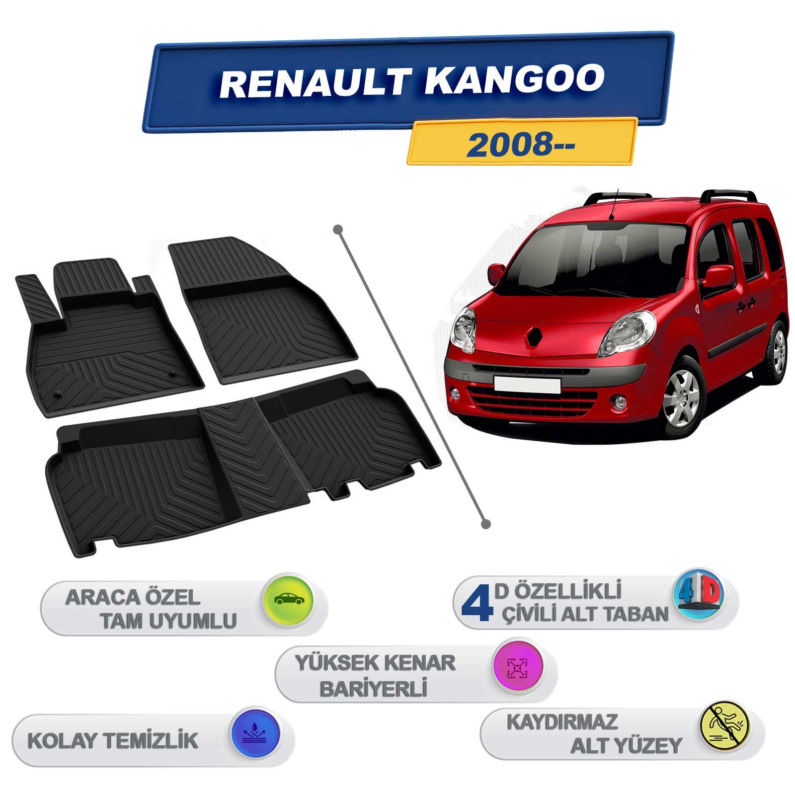 Araca Özel Kalite: Renault Kangoo 2008,2009,2010,2011,2012,2013,2014,2015,2016,2017,2018,2019,2020 İle Uyumlu Özel Tasarlanmış 4D Havuzlu Kauçuk Paspas, Avrupa Oem Kalite Standartlarında En Yüksek Kalite Seviyesinde Üretilmiştir.