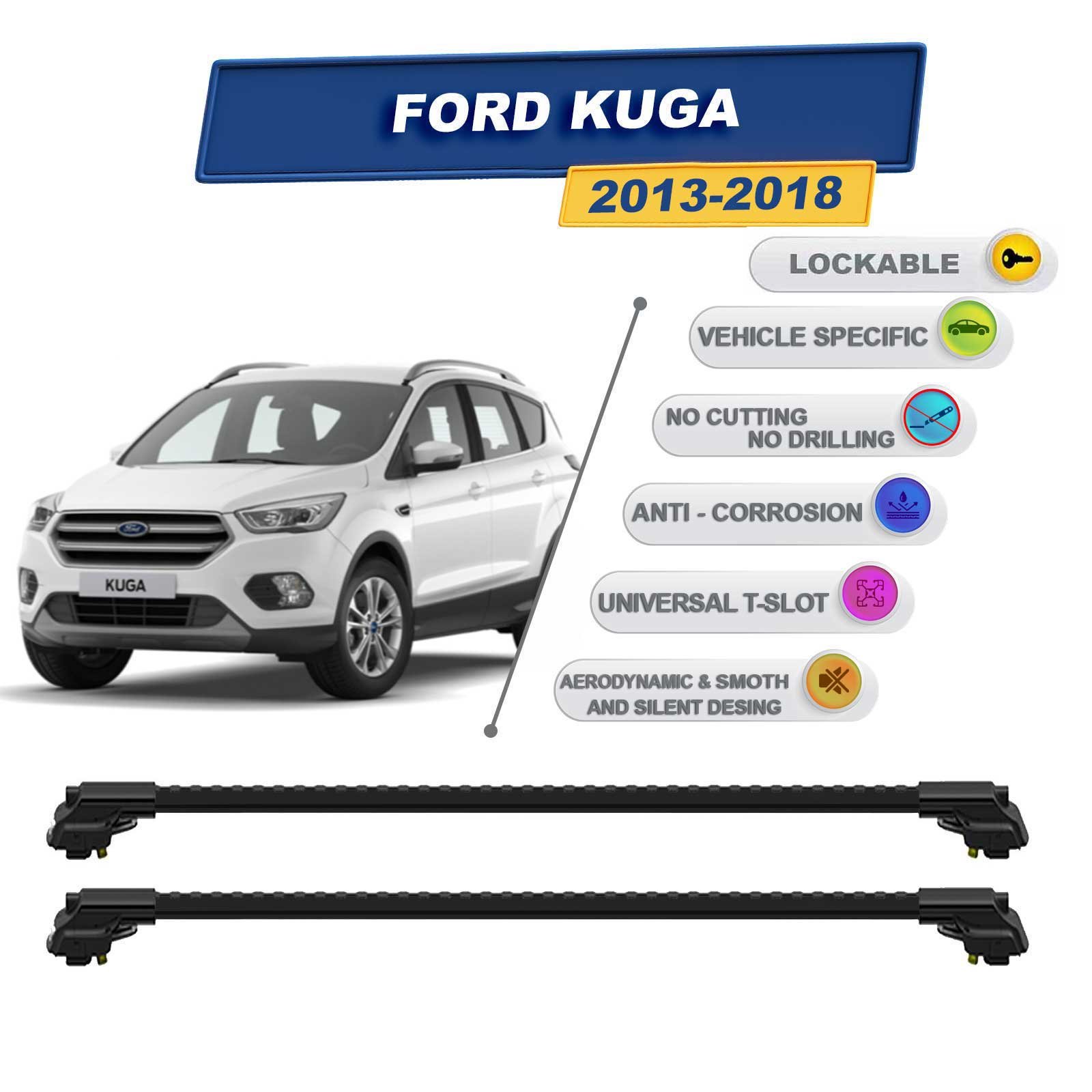Ford Kuga 2013-2018 ile Uyumlu Kilitlenebilir Ara Atkı – Portbagaj Taşıma Barları 2li Set Siyah