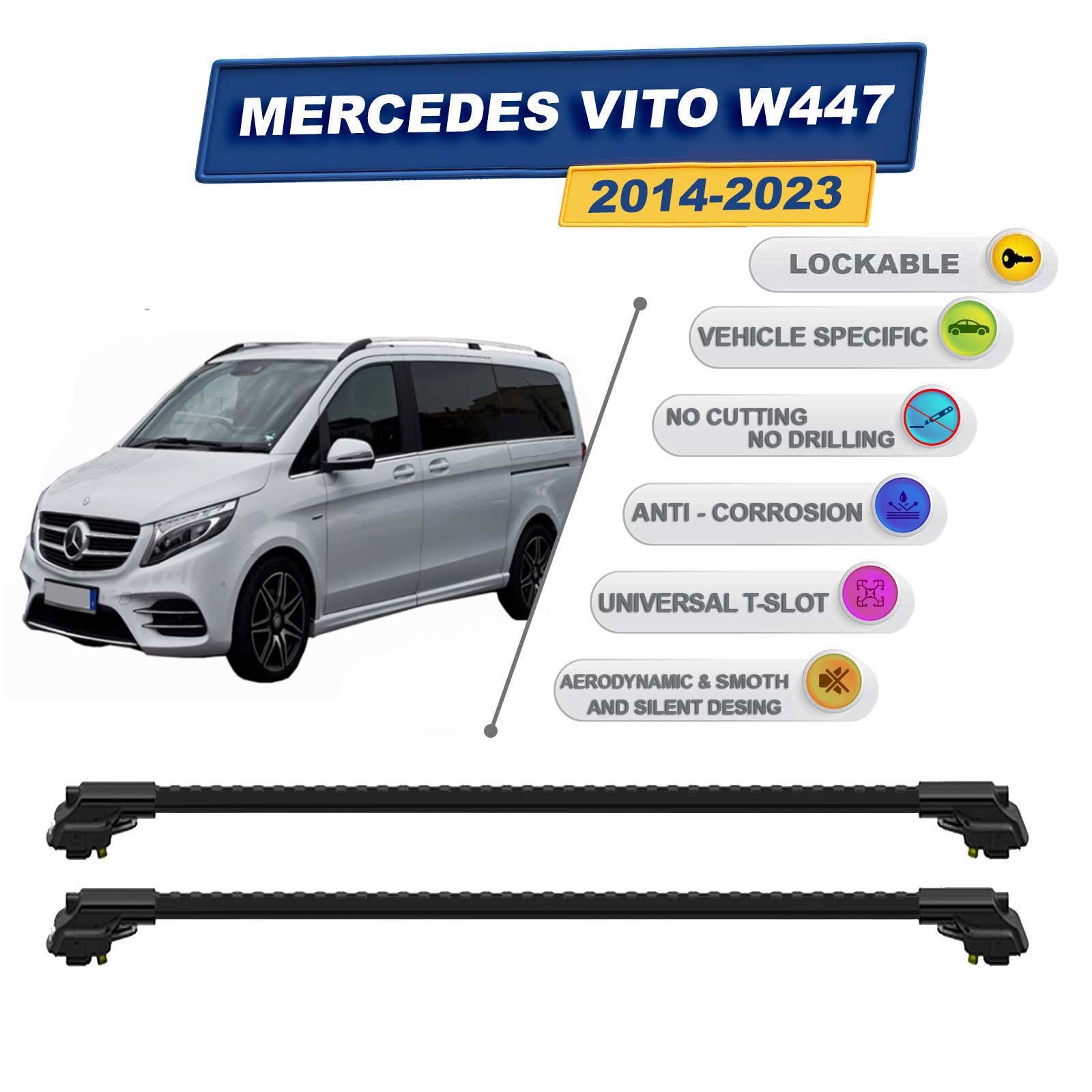 Mercedes Vito W447 2014-2023 ile Uyumlu Kilitlenebilir Ara Atkı – Portbagaj Taşıma Barları 2li Set Siyah