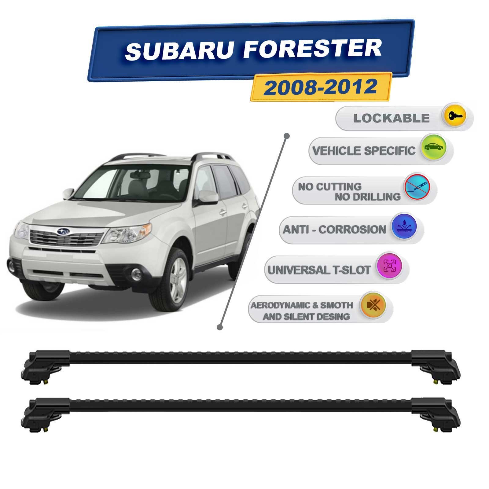Subaru Forester 2008-2012 ile Uyumlu Kilitlenebilir Ara Atkı – Portbagaj Taşıma Barları 2li Set Siyah