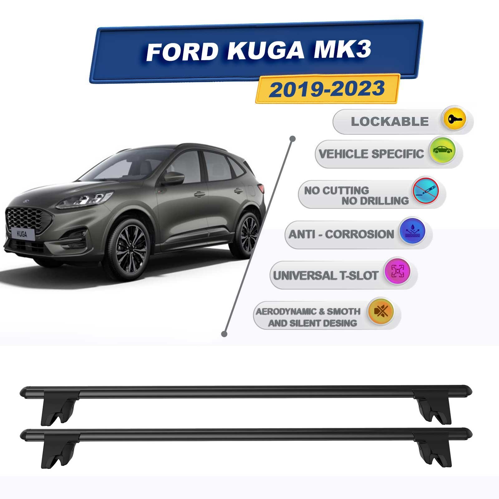 Ford Kuga MK3 2019-2023 ile Uyumlu Kilitlenebilir Ara Atkı Taşıyıcı Tavan Barı 2 adet Siyah