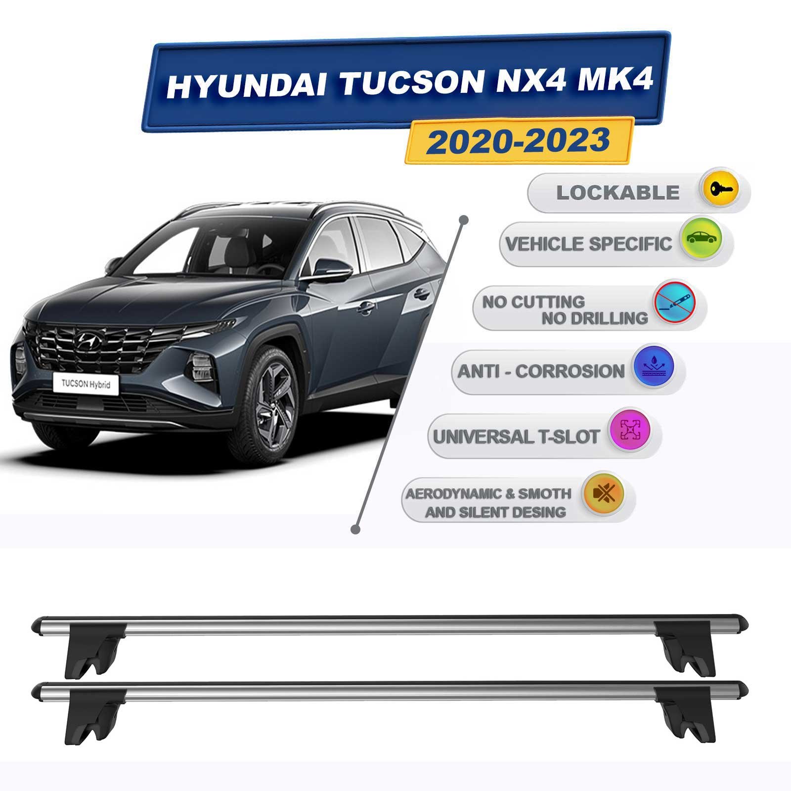 Hyundai Tucson NX4 MK4 2020-2024 ile Uyumlu Kilitlenebilir Ara Atkı Taşıyıcı Tavan Barı 2 adet Gri
