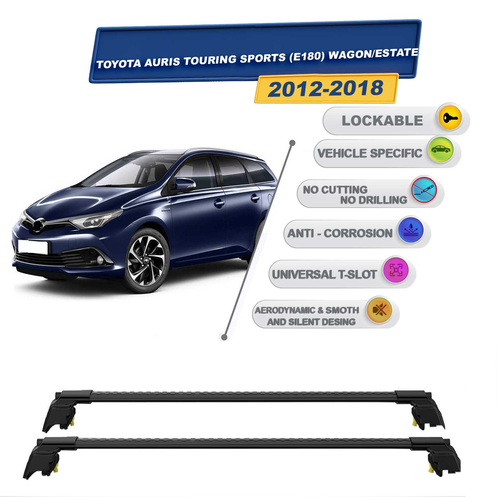 Toyota Auris Touring Sports (E180) Stationwagon 2012-2018 ile Uyumlu, Entegre Tavan Çıtası için Kilitlenebilir Ara Atkı Taşıyıcı Tavan Barları / 2 adet Siyah